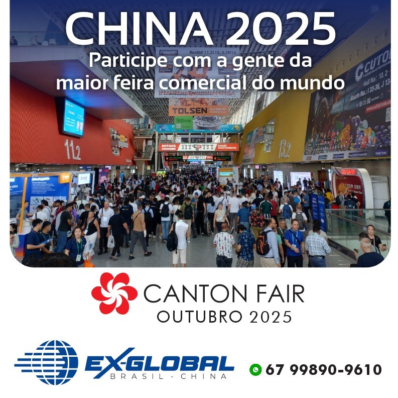 Venha com a gente para a Canton Fair, na China, a maior feira multissetorial do mundo, em outubro de 2025. Nosso grupo de empresários já está pronto, esperando por você.