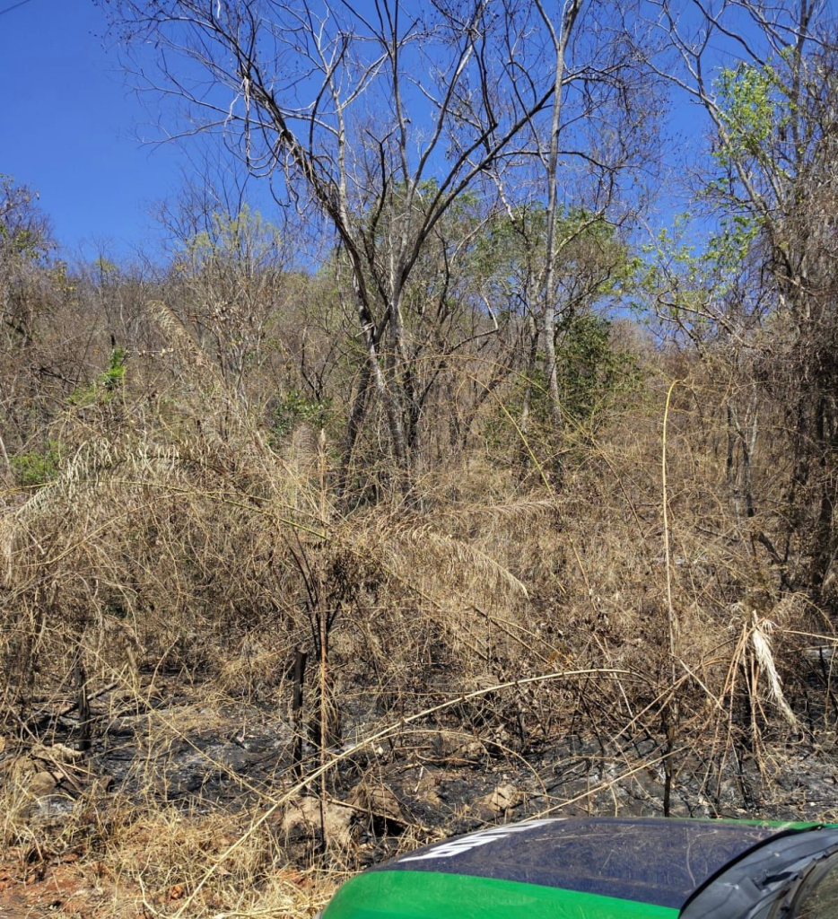 A fiscalização, realizada no dia 26 de setembro de 2025, por volta das 10h30min, identificou uma vasta área com vestígios de incêndio em uma propriedade rural e em áreas adjacentes.
